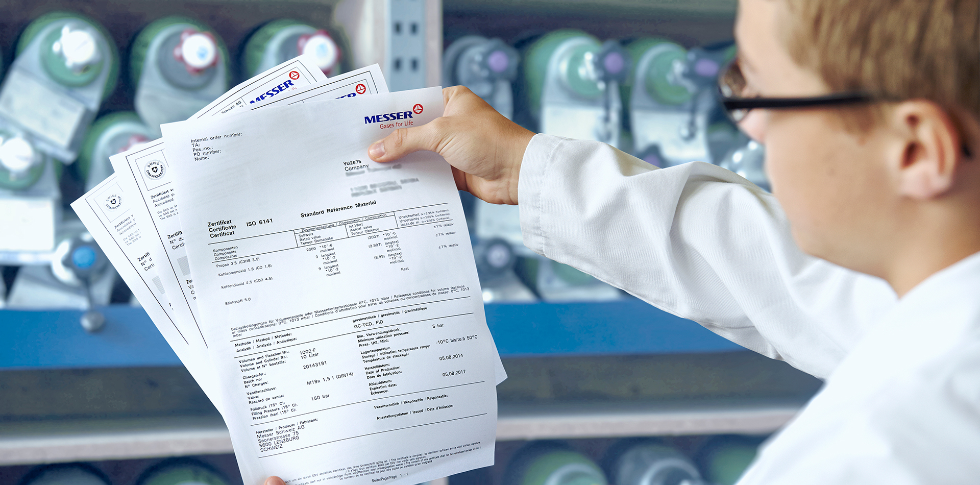 За различни индивидуални газови смеси може да се осигури сертификат за акредитация съгласно EN ISO/IEC 17025 и EN ISO 17034. Това гарантира проследимост на състава и несигурността на газа, което е от критично значение за високоточните аналитични приложения.