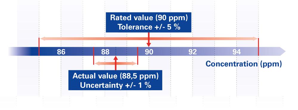 Несигурността – Действителната стойност на компонент може да бъде посочена само със степен на несигурност. Сертификатите на Messer винаги посочват разширената несигурност с коефициент на покритие k=2, което означава, че истинската стойност се намира с вероятност от 95% в посочения интервал.