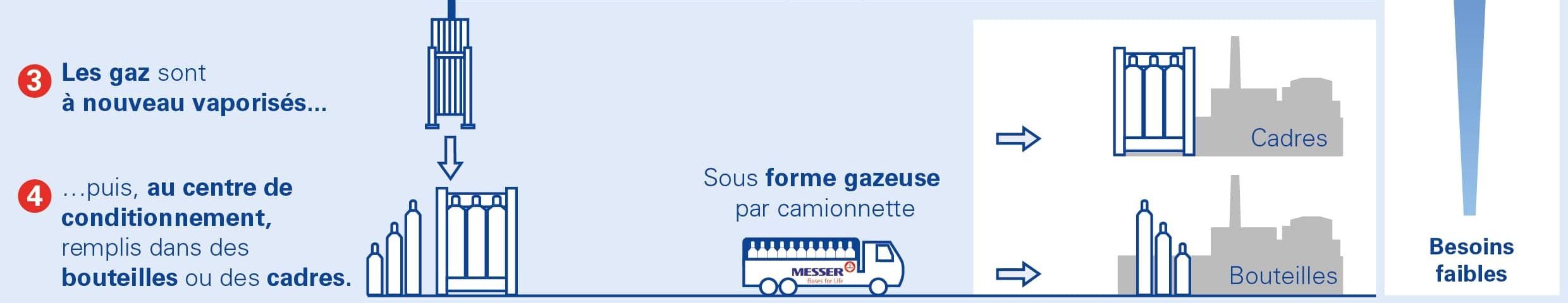Les bouteilles de gaz ou les cadres de bouteilles sont idéaux pour les livraisons de petites quantités.