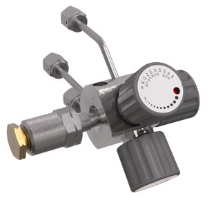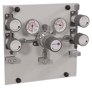 Die Druckgasbehälter werden an die Entspannungsstationen angeschlossen. Über einen Druckregler mit zwei Manometern kann der Druck der zentralen Gasversorgung eingestellt werden und der Flaschendruck überwacht werden. Zudem ist die Entspannungsstation mit einem Absperr- und Spülventil ausgerüstet.