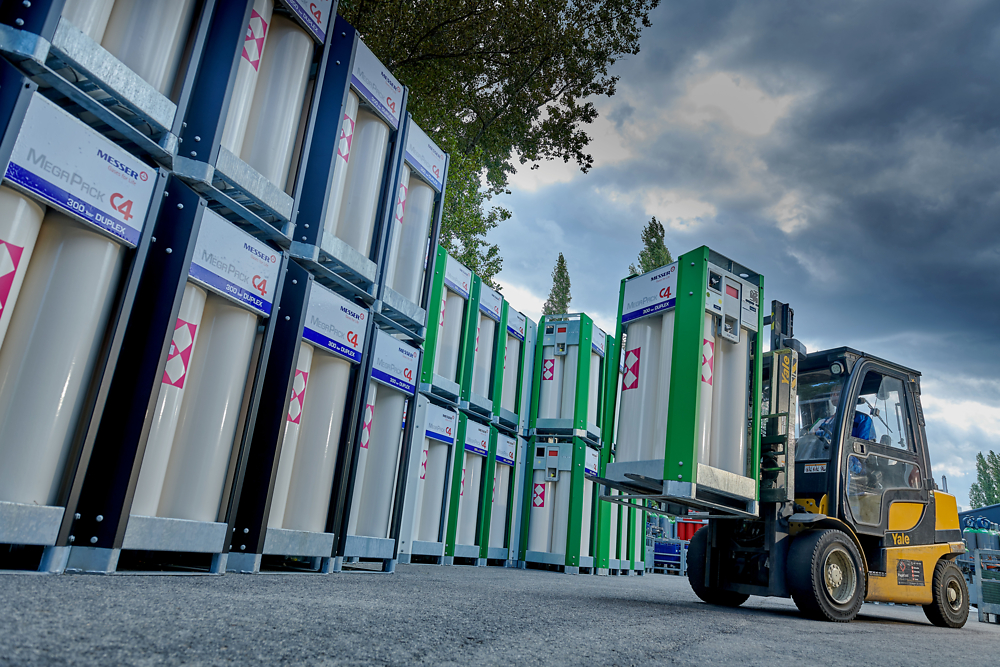 Tlakové lahve nebo svazky lahví jsou vhodné pro dodávky menších množství, zejména pro řezání a svařování a pro potravinářské použití. Sortiment velikostí tlakových lahví sahá od velmi malých lahví pro mobilní použití až po svazky pro velké dodávky.